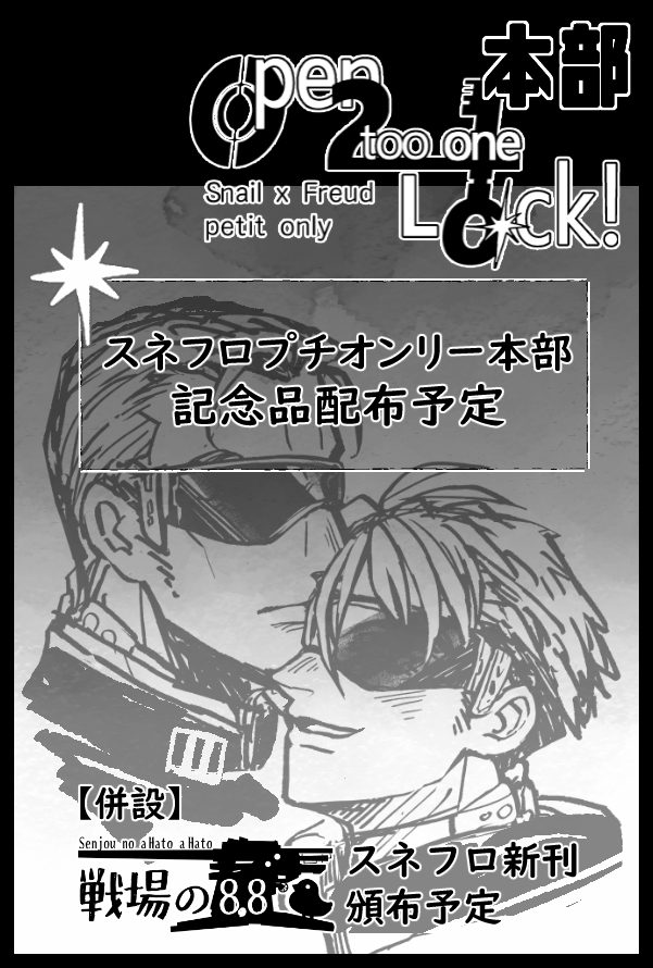 サークル名:スネフロプチオンリー本部 サークル主:hato【X @hato3co】(主催)【プチオンリー告知用X】 |